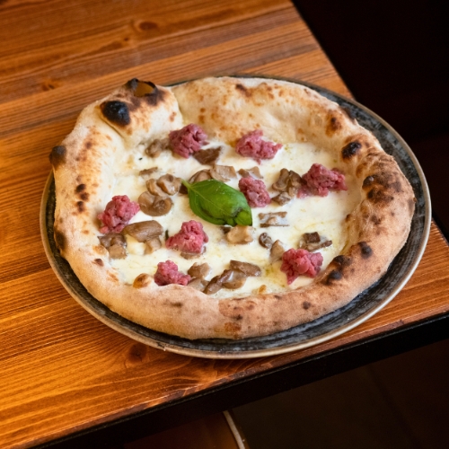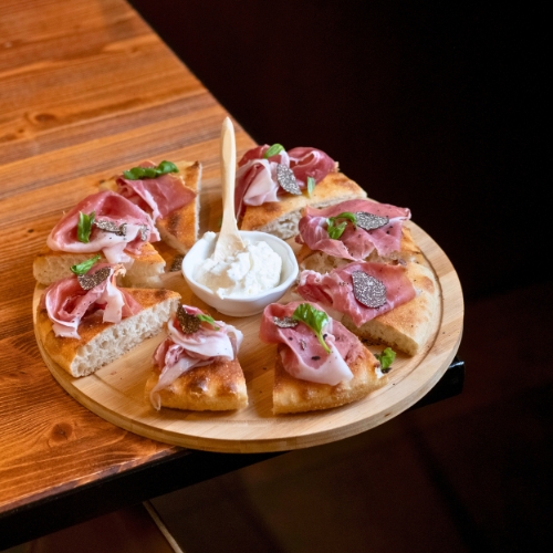 Pizza al padellino con Prosciutto Crudo Az. Dallatana Stagionatura 24 mesi, Stracciatella e Tartufo del Pollino