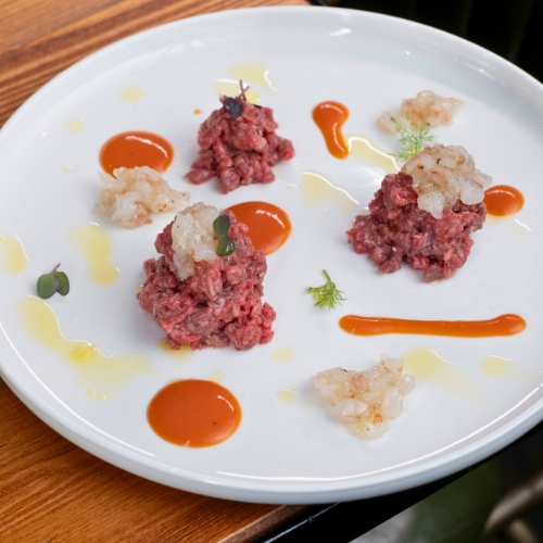 Wagyu Italiano, Gambero Pugliese e Gazpacho di Arance al Peperoncino